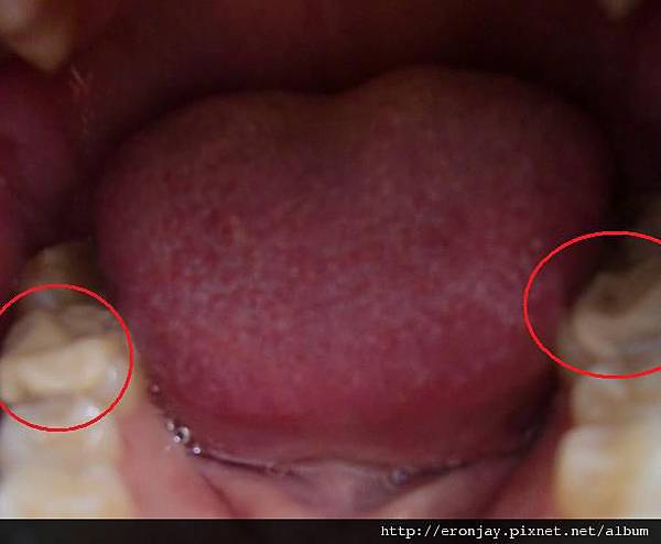 所以回去後我就一直很用力的想要咬合(白費力氣吧) 結果樹脂就被我咬碎了一丁點