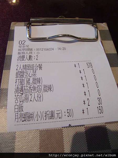 $578的雙人套餐加上$30白飯和月亮蝦餅的差價$100,還有兩杯$60的飲料