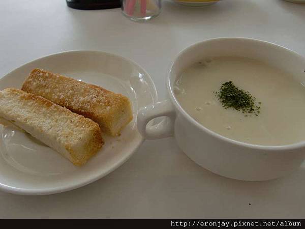 原本想點香蒜麵包的,結果服務生說目前沒有供應,只有上圖的那種麵包,好像是奶油什麼的(沒聽清楚~"~)