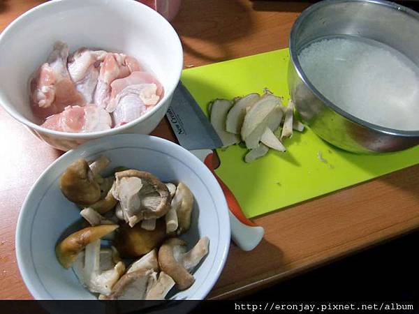 1.雞肉泡米酒30min(煮出來整個雞肉很入味~)