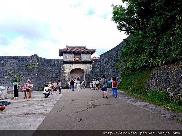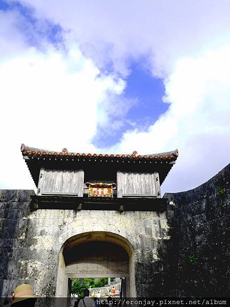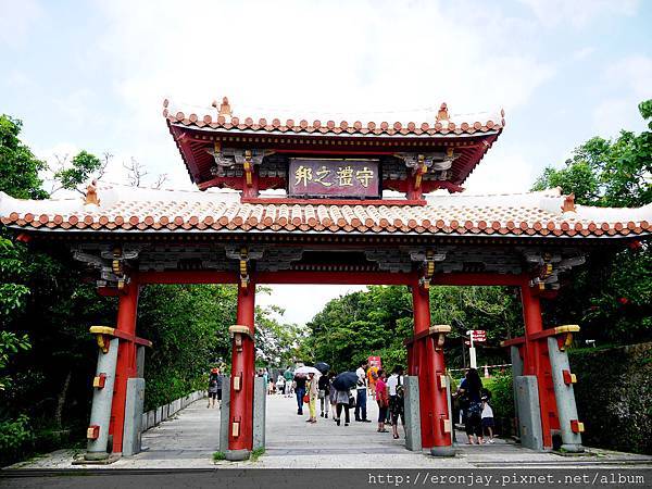 「守禮門」(Shureimon)為中國牌坊式建築(見上圖),匾額「守禮之邦」四字為中國皇帝冊封琉球國王時所贈,此門後來也被稱做「首里門」,我想首里城名字的由來源於此吧!