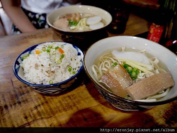 我們一人點了一碗小的首里そば(¥400),再合點一碗炊飯(¥500)