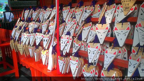 被畫上各種可愛表情的狐狸型繪馬