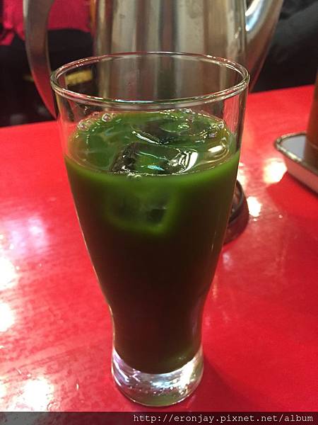 另外還點了一杯冰抹茶,我不太喜歡這個味道,覺得草味很重然後又蠻甜的,但是同行的Leslie和Ting覺得好喝,所以很喜歡抹茶的人應該會覺得還不錯吧!