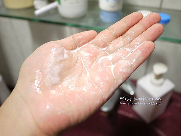 加水搓揉後起泡,沒有像一般洗面乳那麼好起泡,搓出來的泡泡也沒有很綿密